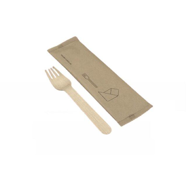 busta in carta avana politenata, Posate in fibre legnose di betulla e pioppo, tovagliolo 2 veli in fibra vergine |